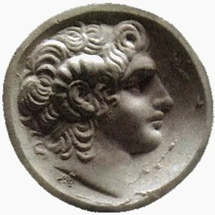 | 印有亚历山大大帝样子的马其顿硬币 | 马其顿帝国,公元前323年 | 维尔吉纳太阳 | 描绘了身穿装饰有蛇发女妖头像的铠甲的亚历山大大帝画像 | 马其顿ui图像 |