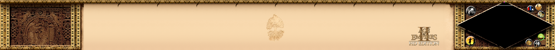 | 使用条顿建筑风格的米兰城,出现在条顿战役第三关“教宗之争”,在决定版中被替换成了意大利风格 | 决定版的条顿UI,图案是十字圣球 | HD版ui,中间的图案是日耳曼神话里的世界树 | 十字圣球 | 世界树 |