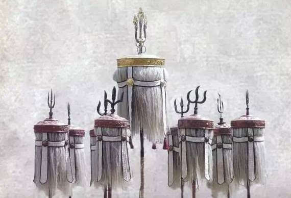 | 索永布,上半部分的永恒之火日月就是蒙古图标的来源 | 苏鲁锭,又名九斿白纛,蒙古帝国权力的象征,决定版ui下方的图案来源 |
