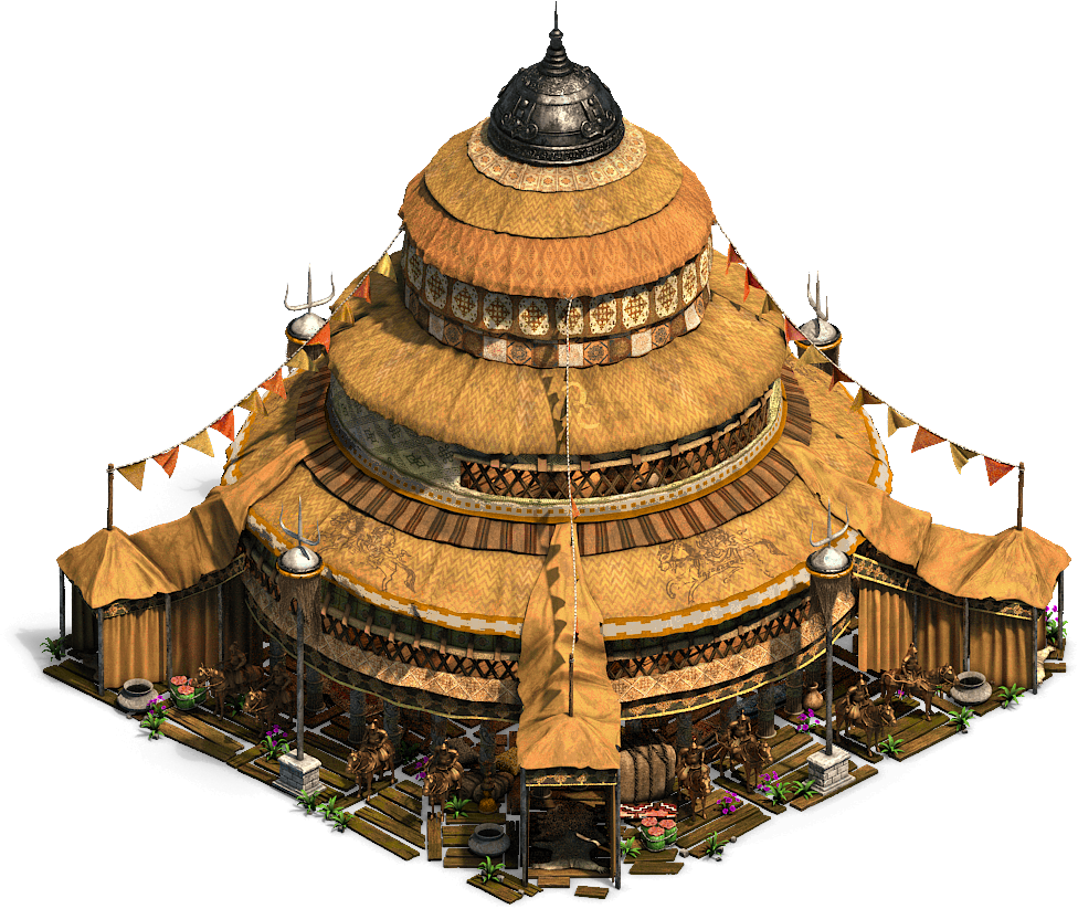蒙古人的游牧习性即使在称霸北亚后依然保有特色,成吉思汗的御帐在历史传说中便极为雄伟,可以用十多匹战马拉动。现今有复原雕塑,是按照曾经目击成吉思汗出巡的欧洲画者流传至今的版画复原而成
