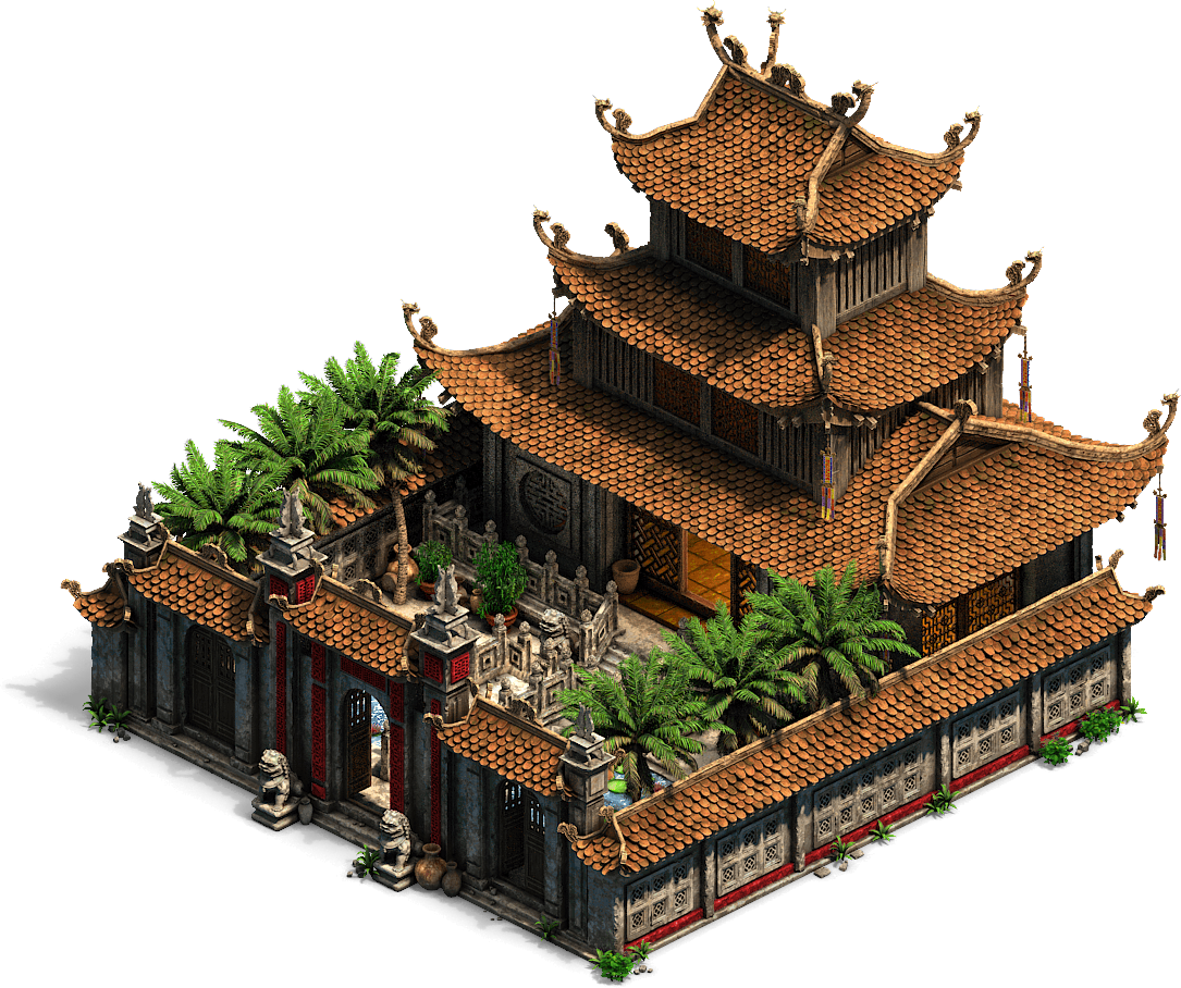 - 越南奇观宁福寺就是这样一个很典型的东亚风格建筑,但根据开发商的说法,蛮王崛起版本中的越南人反映了当时越南南部的占婆王国,但是这依旧是不严谨的,因为游戏的越南战役发生在越南第四次中国统治期间(1407-1427),这段时间的越南实际上还没有征服占婆地区,直到黎利的孙子黎思诚征服了两个占婆国家之后才确立了对占婆的统治,而且他们也尝试在占婆地区开始建造中国风的城镇