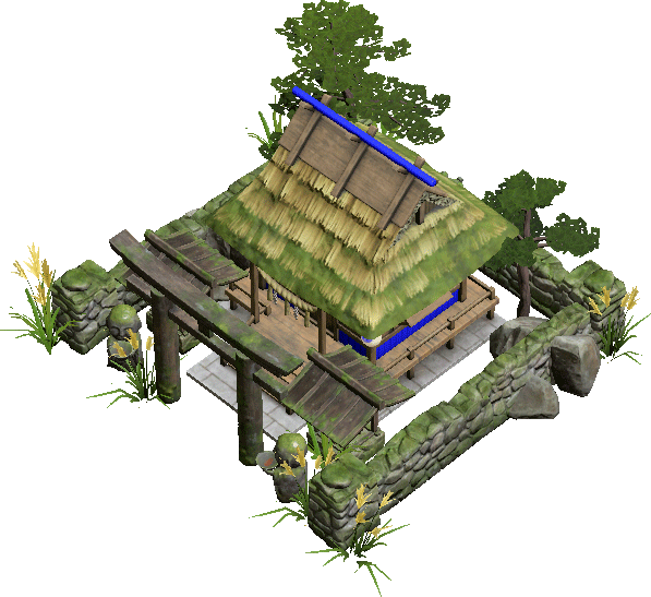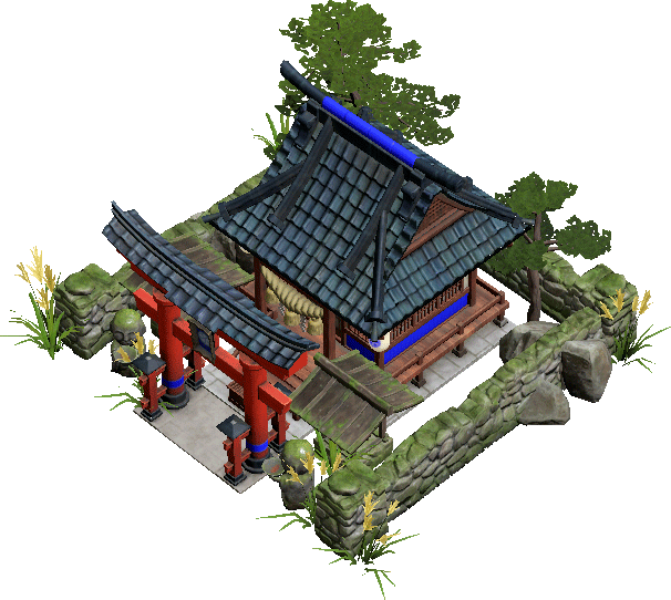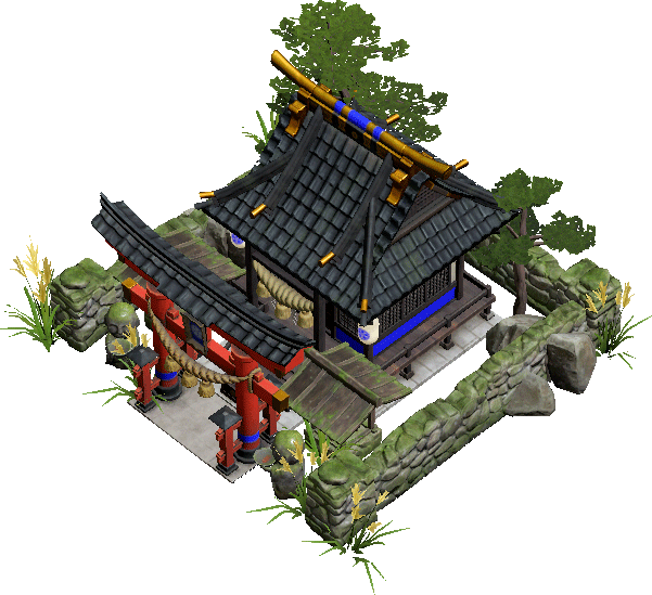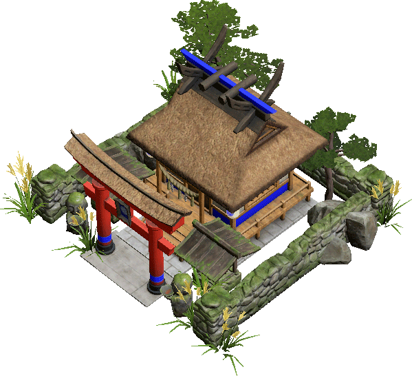 神社类似帝国时代4罗斯的狩猎小屋或朱子遗训的冥想花园,建造之后会根据附近的自然资源的总数来计算巫女可以获得资源的效率,但是和帝国时代4建造完毕瞬间就固定效率不同的是,日本平民消耗神社附近的资源时,神社的效率会变低,这促使日本玩家要积极扩张,否则难以获取大量的眷顾值