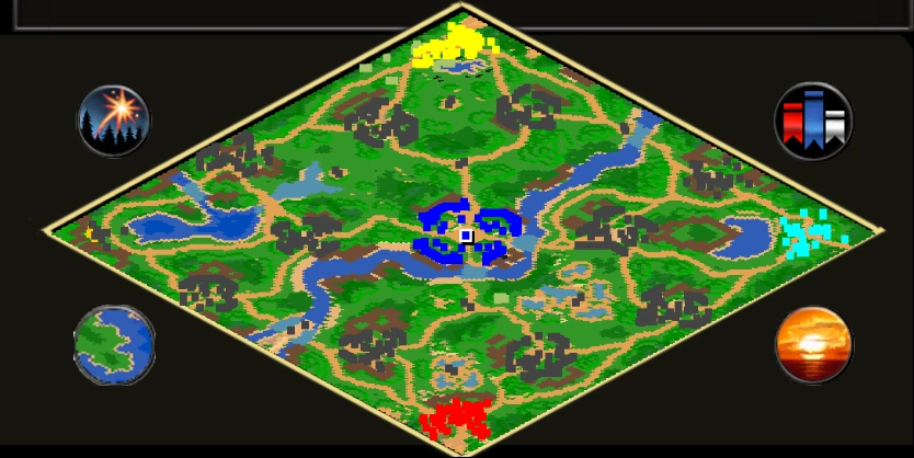 States):地图上由10个穆伊斯卡列国的小型基地组成,双方可以通过摧毁上面的城堡征服他们,此外他们还控制着一些小型的防御塔和部队组成的小型据点,同样摧毁也能占领掉,他们主要使用蔷琵战士、格查战士和弩手战斗
