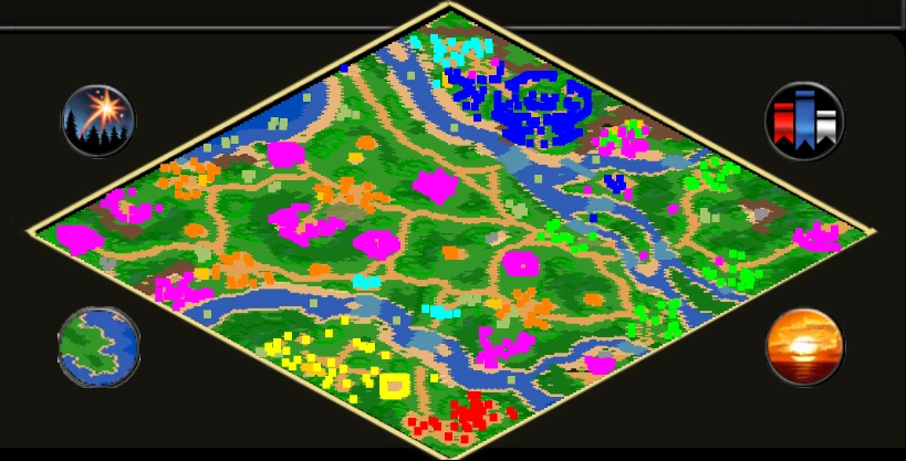 - 2. 解放被占领的昆科族群 (橙色) 应该是首要任务:这些地点将提供资源和村民贡献,以及庇护他们的防御据点。