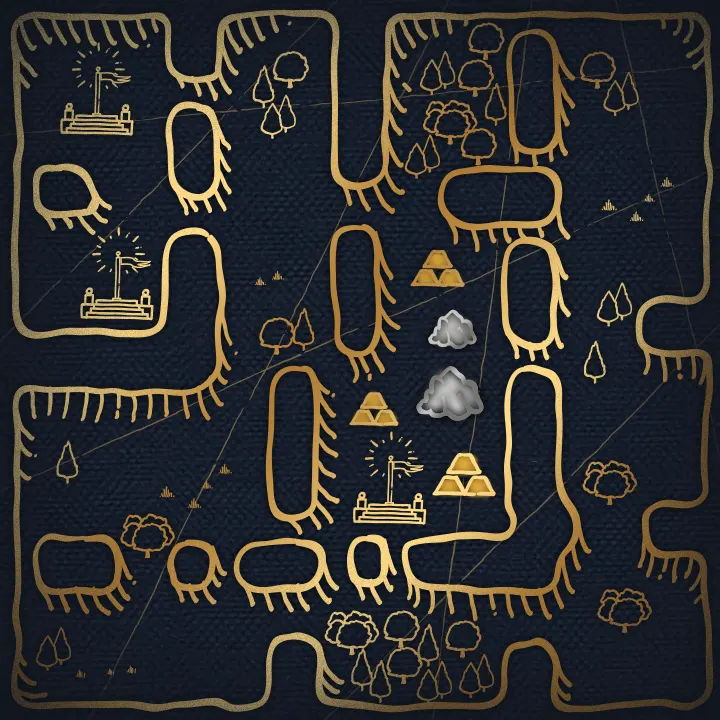 宽阔的运河穿过肥沃的土地,从一座基地延伸到另一座基地,交织成一条资源与掠夺并存的水路。 基础游戏地图 |