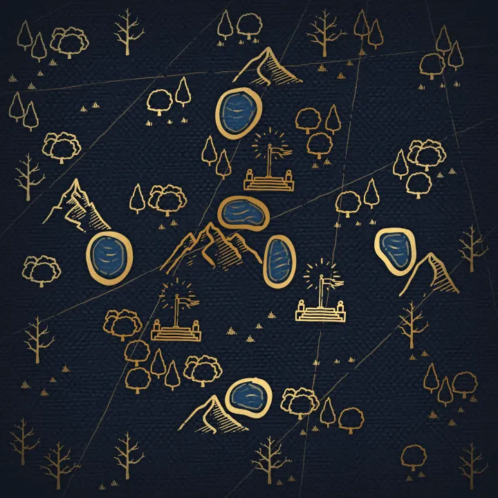 一片湖泊安卧在群山的怀抱中。在湖畔高处,不同的派系正为一触即发的冲突做着准备。 基础游戏地图 |