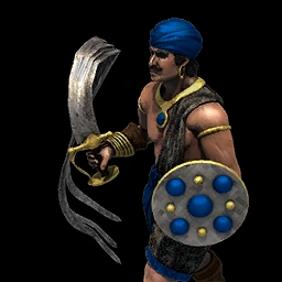 印度剑客是帝国时代2:印度王朝版本引入的达罗毗荼独特部队,和马上轻装兵一样,他们可以在进行一段时间的充能(基础25秒,精锐20秒)后造成冲锋伤害(基础+12,精锐+15),冲锋攻击造成区域伤害,在研发帝王时代科技乌兹钢之后他们绞杀大片部队的能力非常恐怖