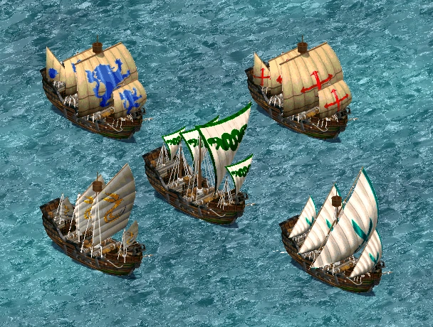 大型战舰(Galleon)是用于战争的大型帆船,是西方在加农炮使用之前使用的最大的战舰,船上载有大量战斗人员和重型攻城炮,在海战中他们会尝试登上敌人的船只进行白刃战俘获敌船,弩炮则是给他们提供了额外的火力