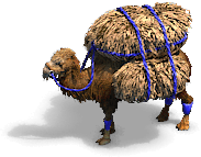 “承载易燃的干草的燃烧骆驼,对坚固的部队造成额外伤害,尤其大象,对射手和步兵较弱,使用时会自爆”