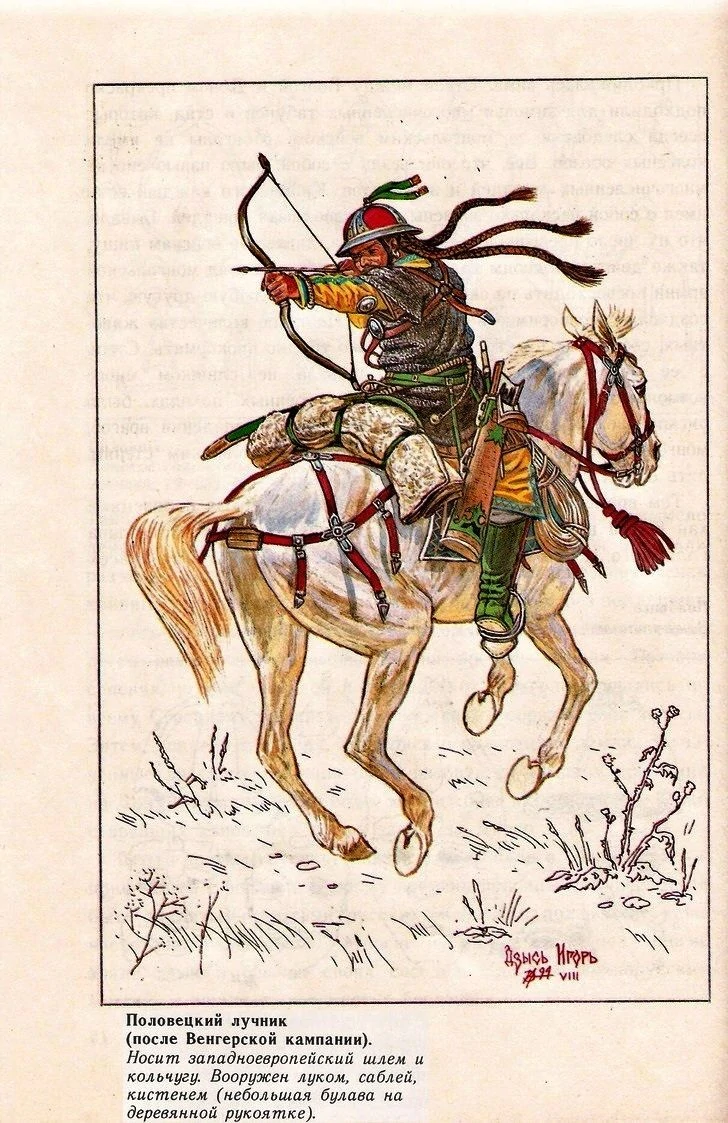 | 钦察 | 精锐钦察 | 披甲波罗维茨骑射手 | 马扎尔国王斯提芬一世对斯拉夫人和保加尔人的虚构胜利绘画,后者由“昆族射手”扮演,来自于照明纪事 |