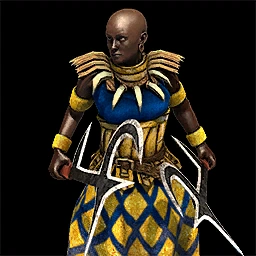 - 飞刀女兵使用一把名为Kpinga的飞刀,这是现实中赞德人使用的武器,而不是丰族的武器,闲置的时候飞刀女兵会把Kpinga如同耍杂技一般丢起后接住,但是图标里面显示飞刀女兵使用的是一种名为Kukris的弯刀,而不是实际模型的Kpinga
