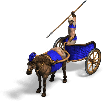 战车是帝国时代原版引入的战车单位,在青铜时代开始可以在马厩训练,战车比骑兵弱小,移动速度比大部分马厩单位要慢,但是他们的优势在于仅需要木材和食物就可以训练,是极其可靠的垃圾兵