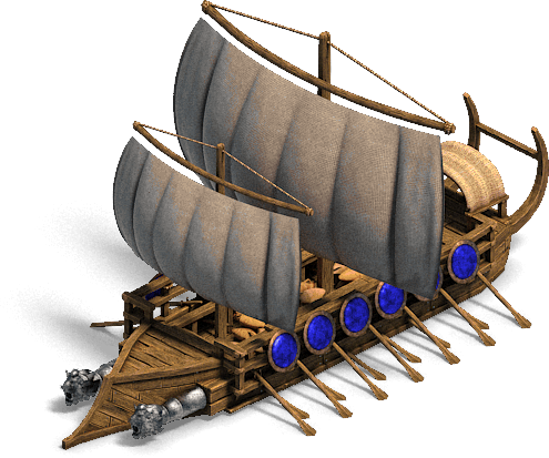 它们是帝国时代2的喷火船的前身,它们拥有24的高攻击力以及极快的射速,所以在一对一它们可以轻松击败其它战舰,然而他们受攻城武器和投石型三桨座战船的额外伤害,所以它们应当远离敌人的海岸,在开阔的水域中进行战斗,躲开敌人塔楼和攻城武器的攻击