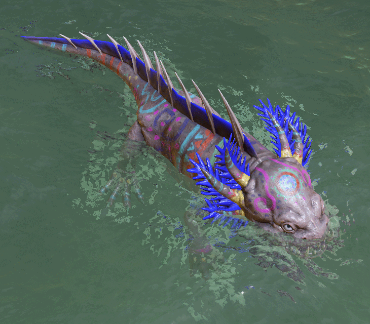 美西螈是传说中的生物,经常与水、重生和转变联系在一起。它是一种原产于特诺奇蒂特兰周围湖泊之中的水生蝾螈,与掌管闪电、死亡、变异和孪生之神的索洛托相关。