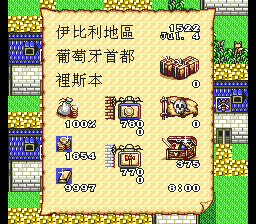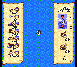 分别为水和食物的数量。在港口内按A键调出以下菜单: