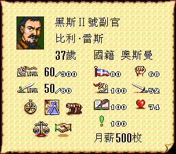 11.忠诚度: 与主人公无关(真是废话呀). 忠诚度分为5档: (1)会离开你, (2)对你没什么好感 (3)开始向你敞开心扉,(4),开始忠诚, (5)绝对忠诚. 在第1档时,水手会经常以辞职作威胁要求加薪, 并且如果当船长则在海战开战前会跑(即使你的船队比敌人强也会). 基本上来说到第4级就比较安全了, 也就是说, 在水手没到第4级忠诚度之前, 尽可能别让他当船长. 除了相性的因素, 要让水手快速提升忠诚度, 唯一的方法就是加薪(最好别等着他提出来, 而是你主动给他大幅加薪), 这样发几次薪之后应该就比较忠诚了.