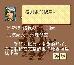 一天,当我和斯塔特聊天时,告诉我他的理想是有朝一曰能去黄金之国曰本看看。那就满足他吧,经过长期航行,终于到达曰本。在那儿,我奇怪地发现曰本人长得极象劳拉,劳拉自己也回忆起了些东西:她家乡附近有一片黄色的海。“黄色的海”不正是中国的黄河吗?立刻出发,沿黄河航行,终于在黄河边发现了长安港。