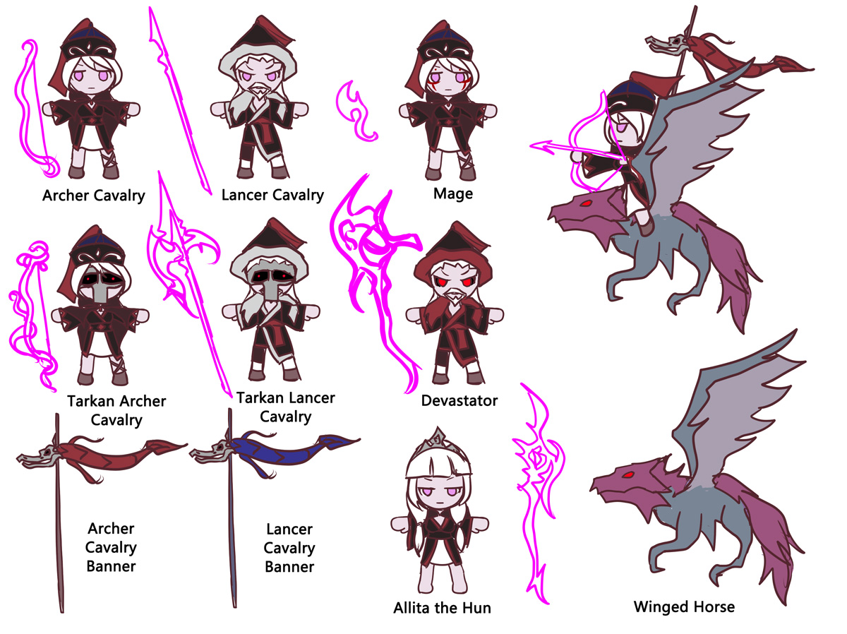 实际游戏里出现的是弓骑兵和枪骑兵,背后背着龙旗