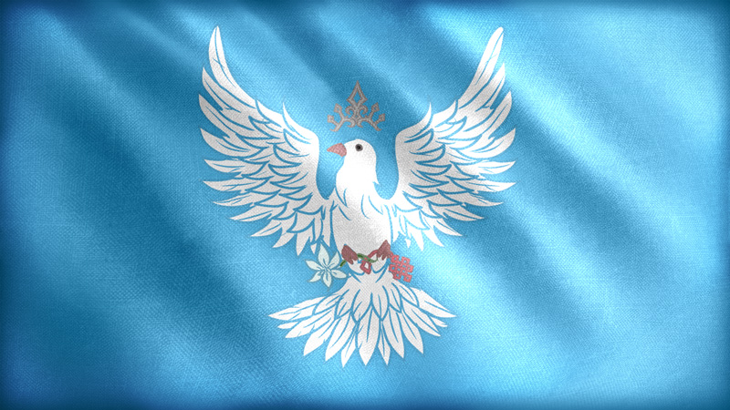 帝国元的旗帜基于伊丽丝的印记,鸽子象征了伊拉修莱德家族,百合花象征了伊丽丝本人,而西景结象征了世清