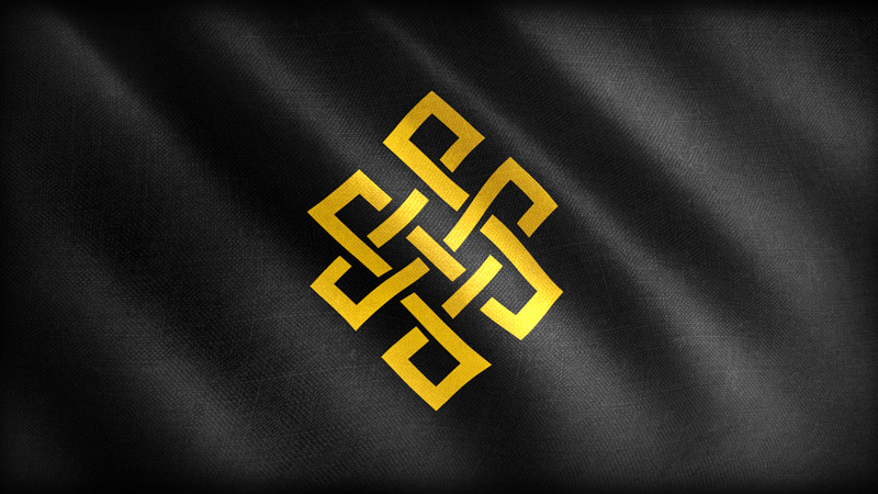 旗帜图案由两个大结组成,分别代表了苍胡(蚩幽)和玄胡(匈奴)