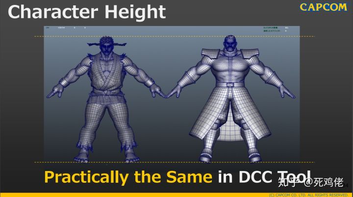 这是因为《街霸》的制作中,所有美术细节都会在游戏的战斗画面中,按照应有的感觉去做调整,角色的身高也不例外。所以我们可以看到其实《街霸》中的原始角色模型身高都是一样的,并不会依照官方的身高设定来制作模型。而是后期根据战斗画面下应有的比例再去做调整(基本上是以隆为基准去做比对)。