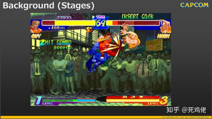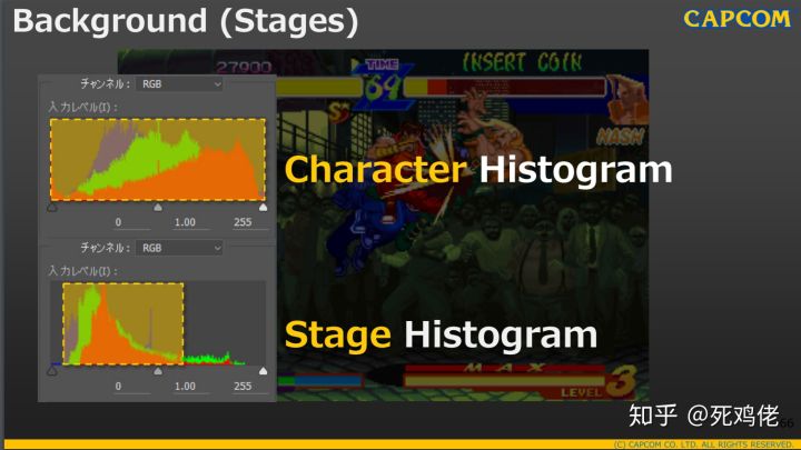 回顾一下 2D 时代《街霸ZERO》的背景设计,是透过色调的控制来区别角色以及背景。