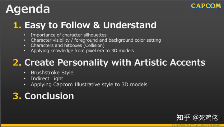 最后龟井对本次的演说做出了总结,对于格斗游戏的美术来说,将战斗情报瞬间正确地回馈给玩家是非常重要的一件事情。龟井再次强调:「在满足能够瞬间传达信息的前提下,再考虑游戏画面的独特美术表现,这就是格斗游戏的艺术」。