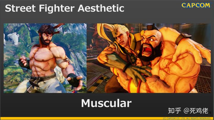 在《街霸》的美术设计中,有两个很明显玩家能看不来的的视觉特点:突出的肌肉线条,以及夸张的画面表现。为什么要这么设计?这是跟格斗游戏的进行方式是息息相关的。