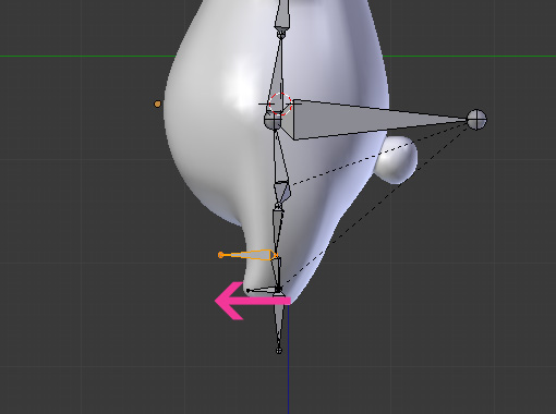 まず、アーマチュアを選択しエディットモードへ(Tab)。一番のもとになっている背骨のTipを選択して、Y軸方向に押し出しします(E→Y)。